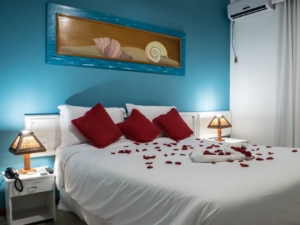 As 43 acomodações do Cahy Praia Hotel possuem cama box queen, frigobar, ar condicionado, wifi, canais por assinatura, cofre, secador de cabelo e varandas (vista mar e vista jardim). Pessoas com necessidades especiais podem se hospedar com conforto em apartamentos devidamente adaptados.